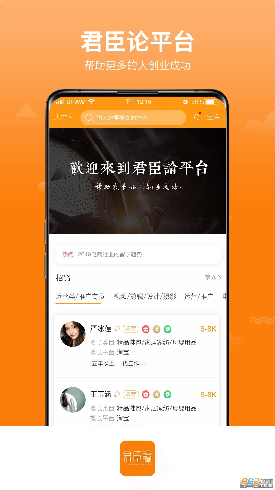 《君臣论君主安卓版》是一款一体化的人才招聘雇佣服务。准尉主播,车手,美工,运营等互联网,电商,新媒体从业者提,提供人才招聘和技术服务的平台,操作非常方便,需要的朋友快来下载吧!