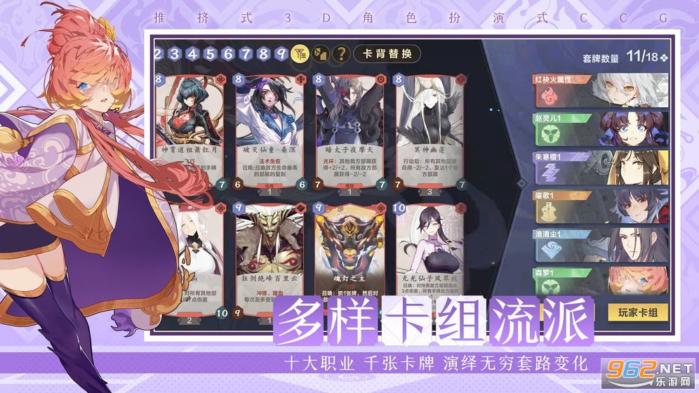全新原创的九位英雄人物,他们来自九野世界的各个角落,只因旷世之灾与你相遇,成为你冒险旅程中忠实的伙伴,玩家可从代表灵,土,金,木,水,火,风,雷等属性的英雄人物中进行选择,完成冒险、收集卡组、与其他玩家对战。