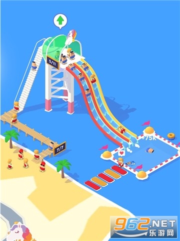 3、拥有丰富的任务,可以不断扩建水上乐园,在水上滑梯上尽情竞技吧。