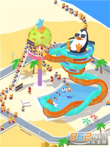 在浪里个浪游戏中你将经营一家属于自己的水上乐园,你可以将水上乐园按照自己的喜好随意建设。为了吸引更多的游客,你要增加更多的设施、招募更多的员工等,快来将你的水上乐园经营的更好吧!