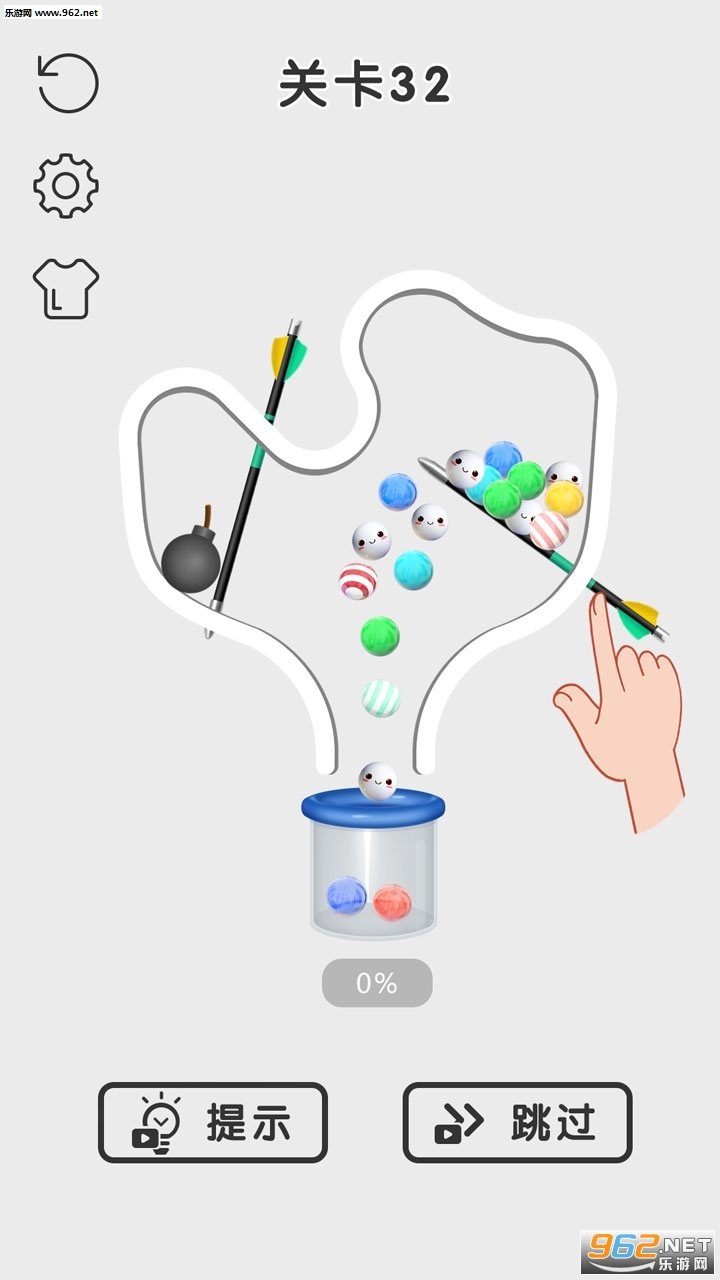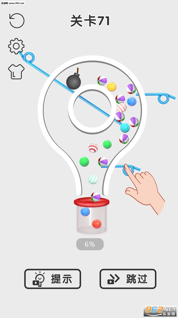3、触屏操作容易控制,注意观察瓶子里的机关布置,不要让炸弹掉下去了。