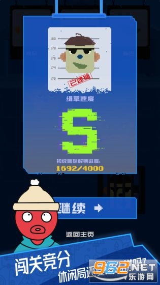 游戏规则简单但超级费眼睛,一边要看着线索尽快在几秒内抓到罪犯从而得高分评S;