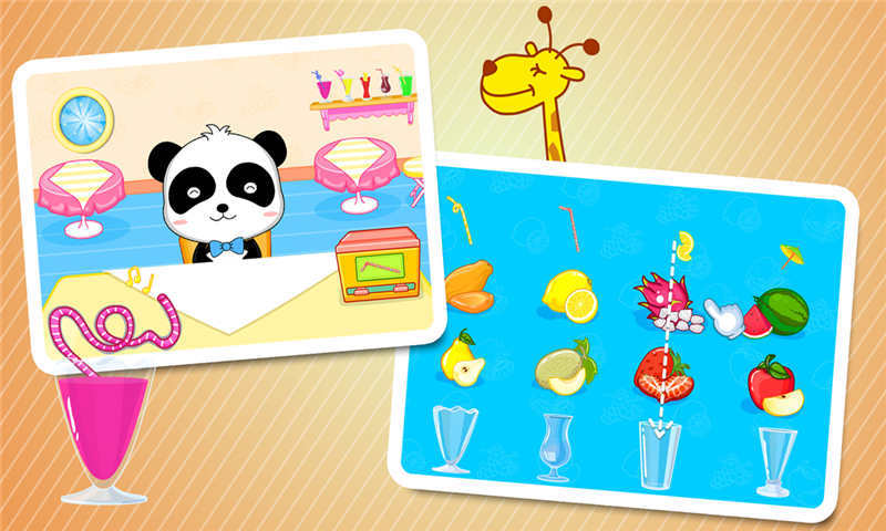 3、观察熊猫喝饮料的满足表情,学习制作美味饮品获得成就感。