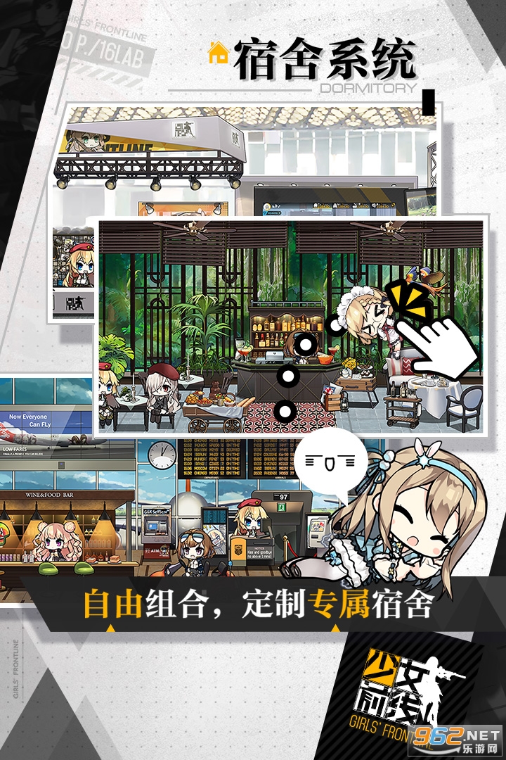 精美立绘涵盖各时期的知名枪械,百款战术少女任意搭配,多元化养成:属性强化培养麾下主力、技能训练领略枪娘作战技巧、小队扩编壮大规模….让玩家麾下的少女成为前线尖兵!