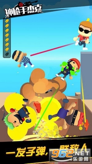 神枪手杰克是一款有一定策略性的射击闯关游戏。在这款神枪手杰克游戏中玩家们将会化身为神枪手杰克参与到这场别样的关卡之中!神枪手杰克的每一个关卡的设计都不一样,如果你想从劫匪手中将人质安然夺回的话,就要利用整个场景用你的枪支将他们一次性消灭。