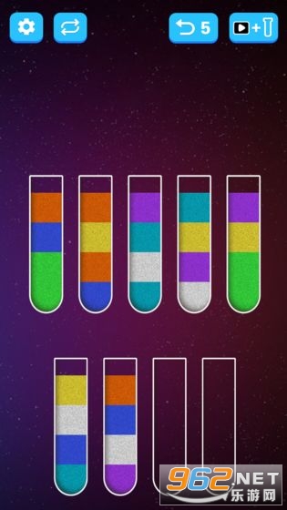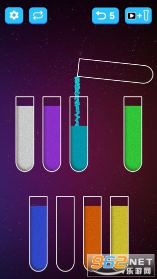 2、非常的简单,适用与所有人群,将颜色相同的沙子倒入试管中就可以过关。