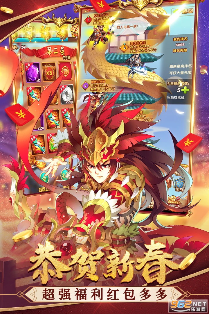新服登录即可领红将,活动元宝无限送;次日最强神将【项羽】【吕布】【李元霸】【蚩龙】任选;四大美女【王昭君】【貂蝉】【杨玉环】【西施】悉数奉上……不花钱,照样玩出爽快!