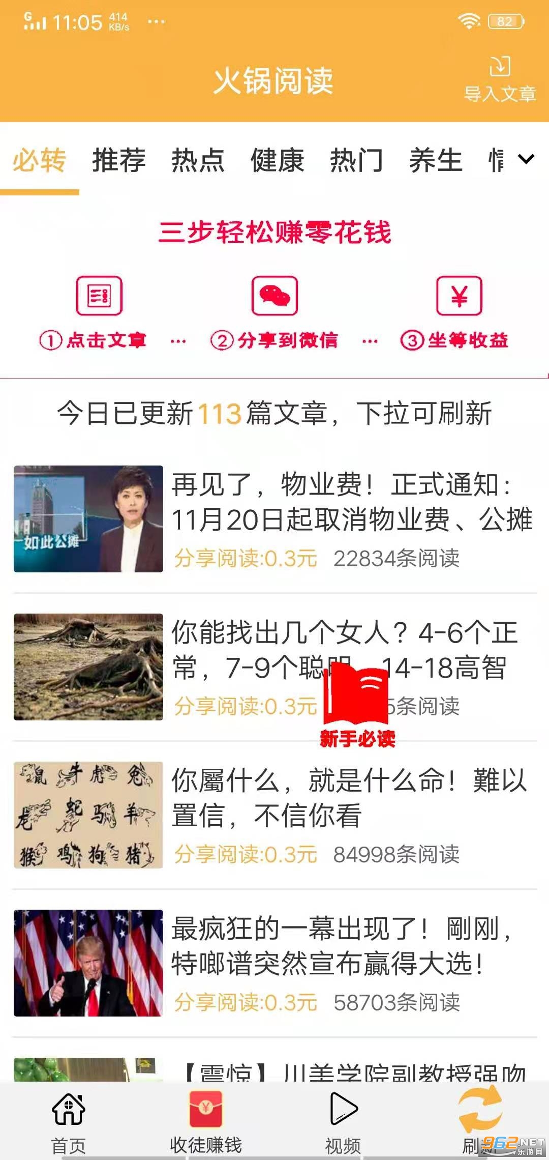 火锅阅读APP(胡巴联盟)旗下全新上线的高涨分转发赚钱平台,于2026年12月30日隆重上线!新人下载安装火锅阅读送0.3元现金红包,平台上每天更新超多绿色健康的新闻资讯,同时支持个人上传,用户只需随手分享至(群、好友、朋友圈),好友成功阅读就能获得现金收入,单价0.3元/阅读,低单价高涨分,非常适合长期玩!