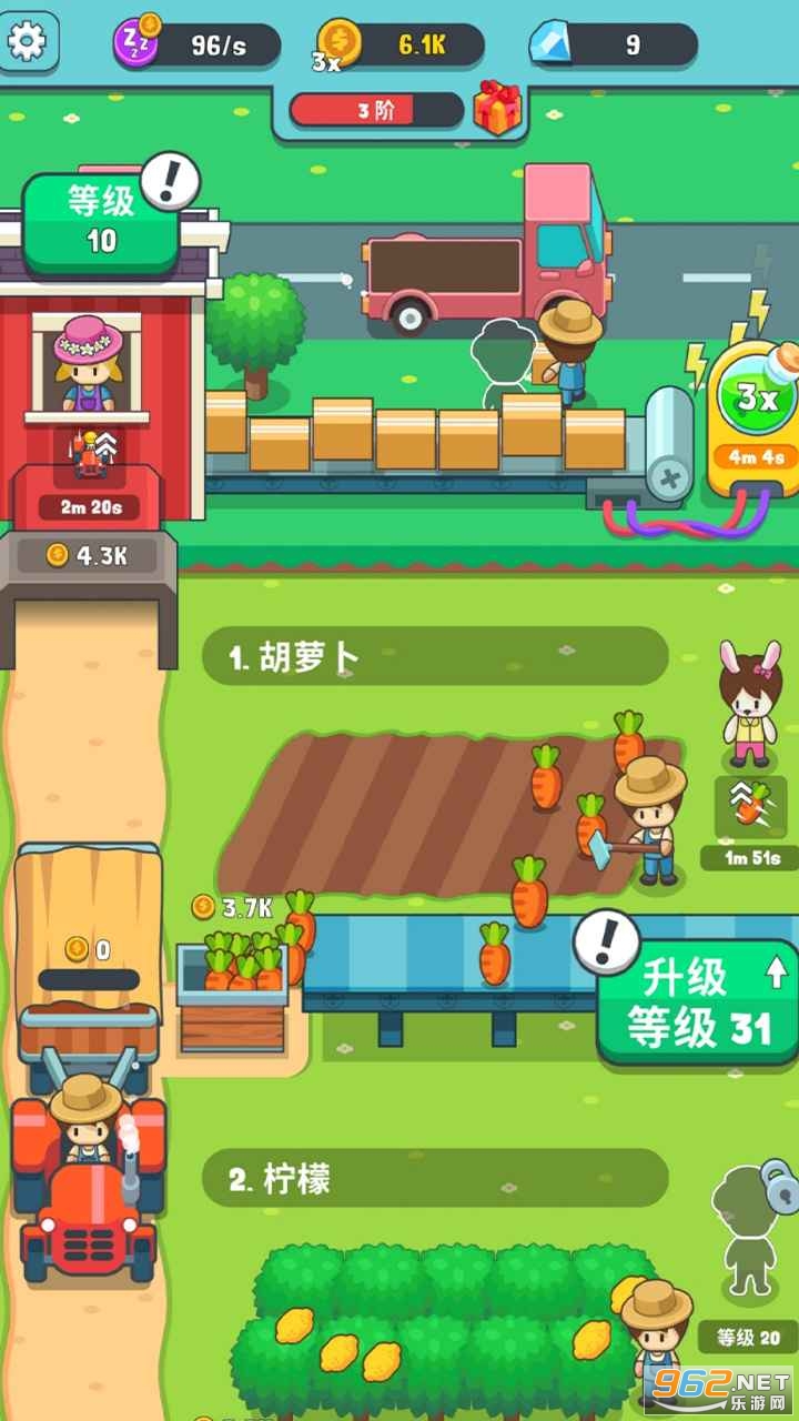 2.赚取金币升级农场规模,提升作物成熟速度和产量,获得更高的金币收益。