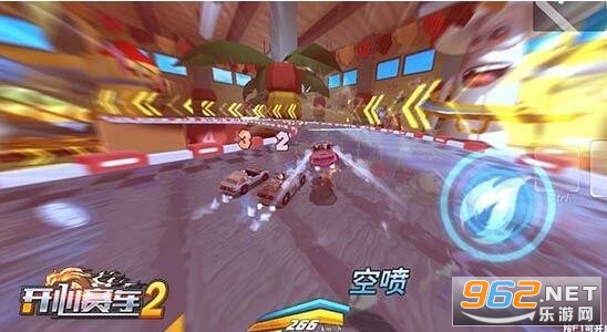 1、Q版高清精致画面感赛车竞速手游,提供普通竞速和道具竞速以及个人冒险等玩法;