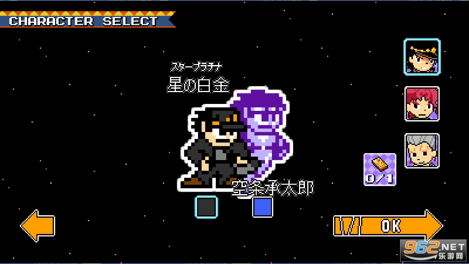 《JOJO的奇妙冒险X洛克人1.24安卓》是一款2D像素平台动作冒险闯关游戏,此版本加入了电子加必尔,里里库,水晶乔,花京院,凤凰五个新的敌人,玩家可以自由选择自己扮演的角色,进入到不同的关卡场景中大战敌人,花样闯关,快来下载体验吧!