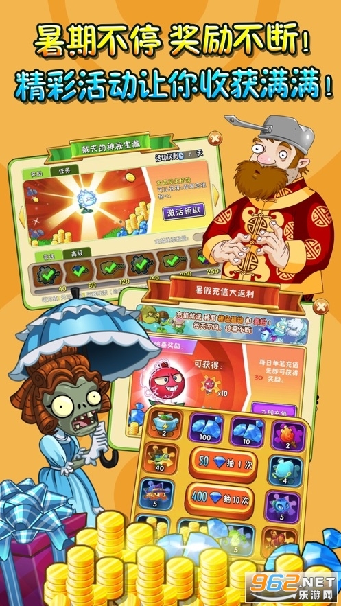 《pvz2植物9999999级修改器国际版》是一款非常好玩的塔防策略类的游戏,玩家在游戏中养成各种不同特色的植物进行闯关。多样化的植物种类,根据他们的技能以及僵尸的特性安排最合理的位置,策略性强,适合喜欢布局的玩家。喜欢的话就快来下载吧!