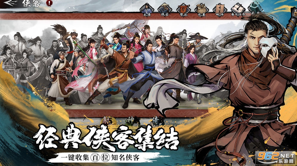 集齐射雕三部曲百位传奇侠客,尽情收集养成与大侠仗剑天涯。经典剧情还原,黑白漫画动态演绎,三层动效,满屏大招,栩栩如生勾画动态江湖。