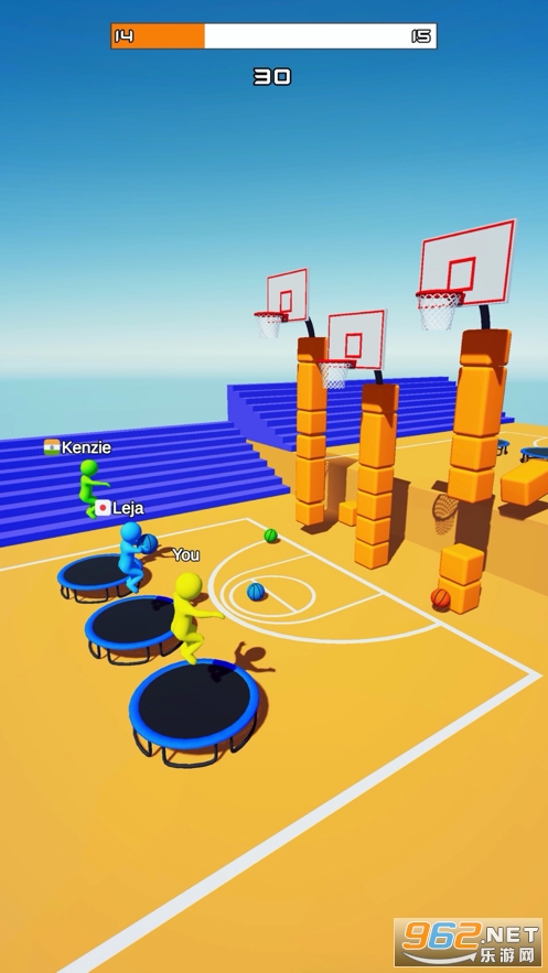 趣味的投篮游戏,利用弹床可以高高的跳起,进行投篮,有着多种不同样式的篮球皮肤可以体验,玩家需要精准投篮打败一个个对手,喜欢的朋友可以下载试试。