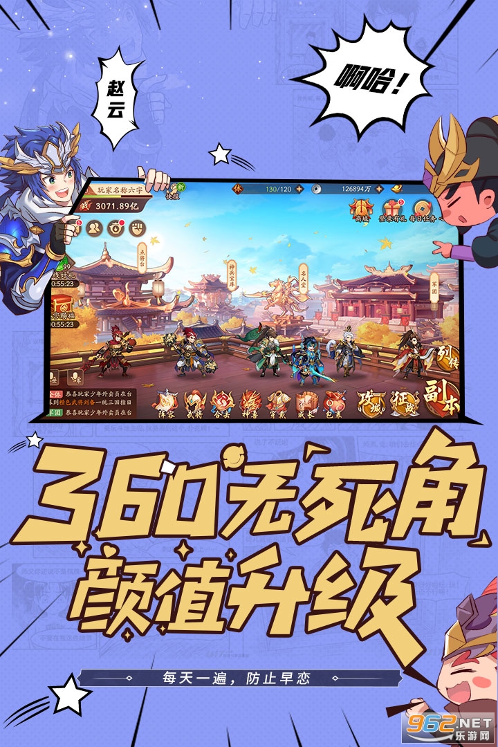 百名顶级画师倾力加盟,打造少年武将颜值巅峰!威武霸气的曹操,调皮可爱的小乔,英姿飒爽的赵云……300余名三国武将,完美还原成16岁的少年!每一个表情、动作都栩栩如生,与众不同!