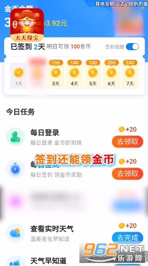 《天天得宝红包版》是一款为朋友们打造的做任务抢到领红包的赚钱平台,天天得宝app中每天整点都可以抢红包,能抢多少全看你的运气了,最高可抢88元红包,软件中还有着一些任务可以领取,每天签到、查看天气等完成任务后可以获得金币,金币兑换红包。