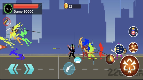 横版街机闯关模式,不一样的火柴人冒险闯关,简单又上手的操作,经典横版风格,丰富的场景等你去探索。许多的敌人手持武器,等你去前去挑战。各种华丽的大招技能,炫酷的特效,也让游戏更加有趣。