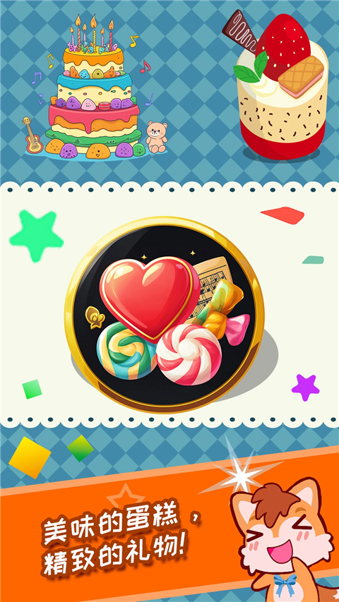 1、在主界面清晰划分两种游戏模式,小朋友可直观选择蛋糕制作或创意摆盘进入对应游玩环节。2、蛋糕制作模式提供从选择模具、涂抹奶油到装饰点缀的完整流程,支持多次修改与重新创作。