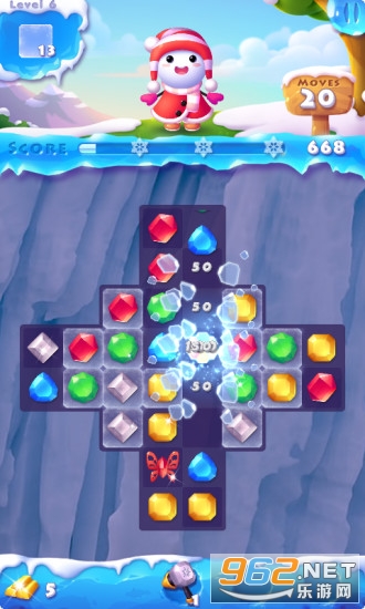 开关和匹配3个或更多的冰晶,创造连击达到目标。