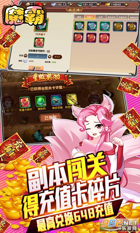 ★充值无限送,副本闯关、升级、每日活跃、升级许愿签到得充值卡碎片,648充值卡随心合成!