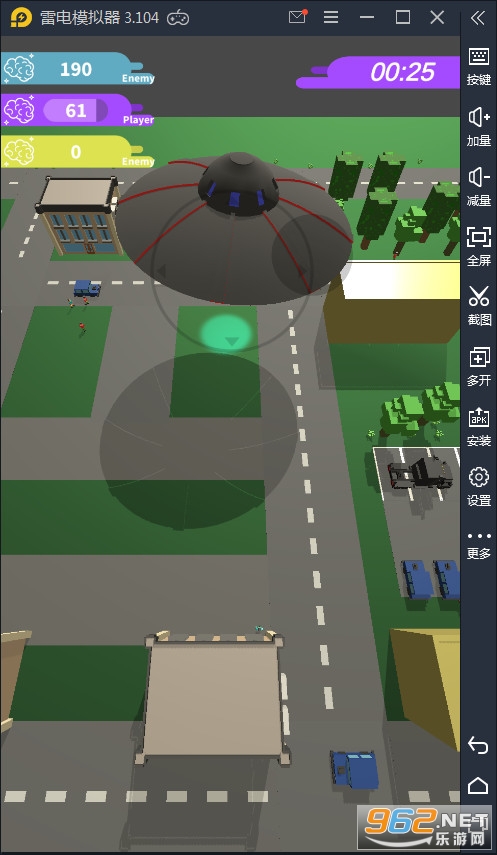 《飞碟占领城市安卓版》是一款卡通风格的吞噬休闲小游戏,游戏中玩家可以驾驶你的UFO在城市的上空飞行,吞噬掉城市中的人和物,一开始你只能吞噬一些很小的东西,例如人类,当你的飞船变的更大的时候,你就可以去吞噬更大的建筑物了。