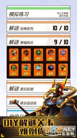 游戏中解谜模式包含精心设计的残局关卡,带给你烧脑体验的同时,每通过一关都会有卡包奖励。玩家还可以DIY解谜关卡,去考考其他玩家。