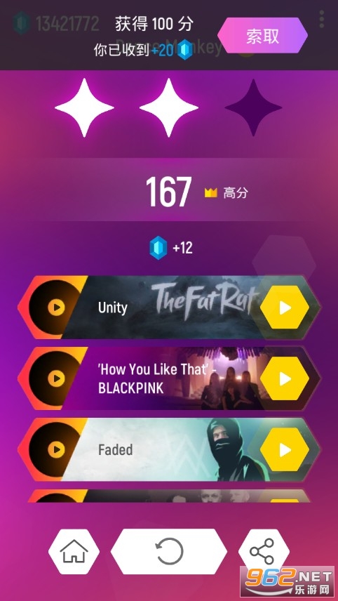 选择不同的音乐,还会有着随机生成的关卡场景。