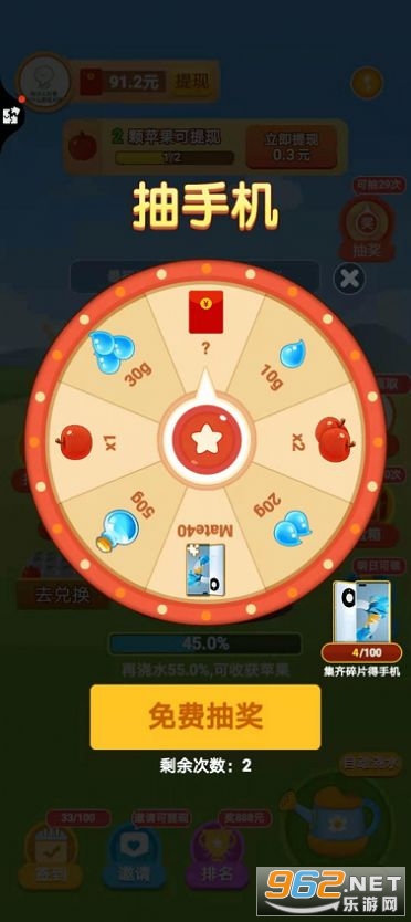 我家果园,一款好玩的经营类的养成红包游戏。在这款我家果园红包版游戏中,身为农场果园的园主的你需要妥善的经营着自己的果园。在游戏中玩家们的收益与自己的果园紧紧相连,在这里大家种植的果园成长的越快所能够获得的奖励也就越多。在游戏中还有超多不同的玩法以及模式可供大家体验,在游戏里每日登录还可以获取抽奖机会非常的有趣。