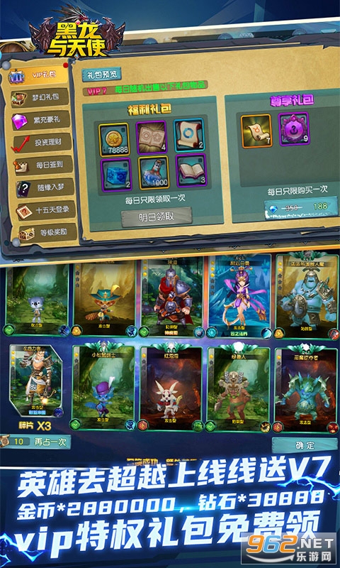 ★上线送V7,金币*2880000,钻石*38888,vip特权礼包免费领。