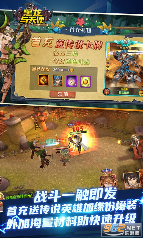★首充3倍,首充送传说英雄加缘份橙装,外加海量材料助快速升级。