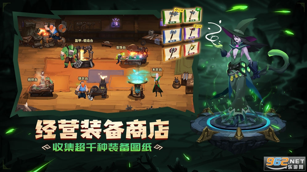 《装备英雄》是模拟经营+英雄养成深度结合的一款创新游戏。玩家在游戏中拥有一间装备制造及售卖于一体的店铺,可以雇佣人类、矮人、兽人、精灵和地精等5个种族的工匠制造装备。游戏中拥有18类共计780张装备图纸,玩家可以选择心仪的制造方向,成为制造大师。在游戏中,装备可以用来完成订单赚钱,可以在拍卖行中流通售卖赚钱,也可以武装自己的英雄,变得强力。