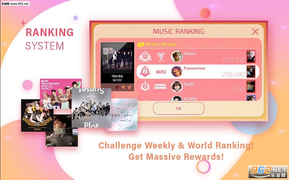 游戏曲库及时更新,收集K-star组合的人气歌曲,玩家随意选择,边玩边听歌。