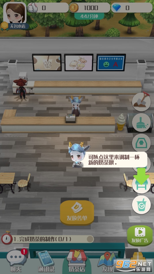 趣味的奶茶店经营游戏,玩家可以制作珍珠奶茶等众多不同的奶茶进行售卖,可以发送传单增加顾客的数量,可以升级奶茶店,增加桌椅等,喜欢的朋友可以下载试试。