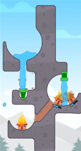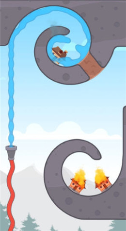 《Dig Water挖土引水灭火游戏》是一款趣味手指游戏,游戏中玩家的任务是灭火,你需要将水流引导到有火苗的地方,用你的手指画出引导线路,让水流顺着你画出来的沟渠流动,你的沟渠要避开障碍物,并且要遵循水往低处流的原理,让水流经过所有有火焰的地方,灭掉所有的火焰。