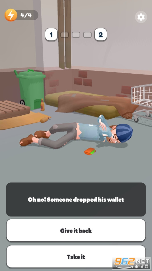 你饥肠辘辘,而有人掉了钱包。你是行善事将它物归原主,还是留着它买些吃的。当不那么显而易见的选择却带来更优厚的回报时,你可能会惊讶不已!这款互动式街头生活模拟器将是对你的挑战,让你在游戏的过程中步步为营!