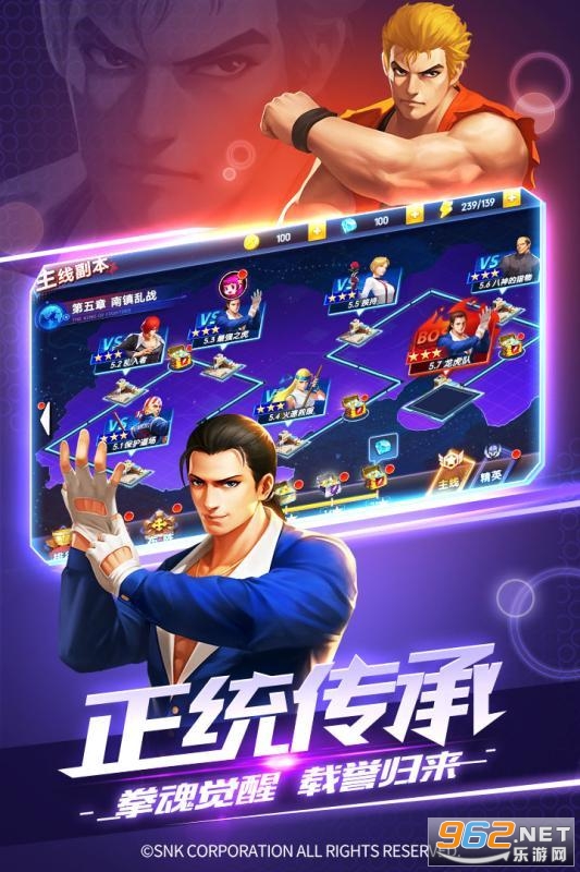 1、最顶尖的卡牌自由收集,玩家熟悉的拳皇英雄这里都有,最顶尖的卡牌组合让团队实力更强;