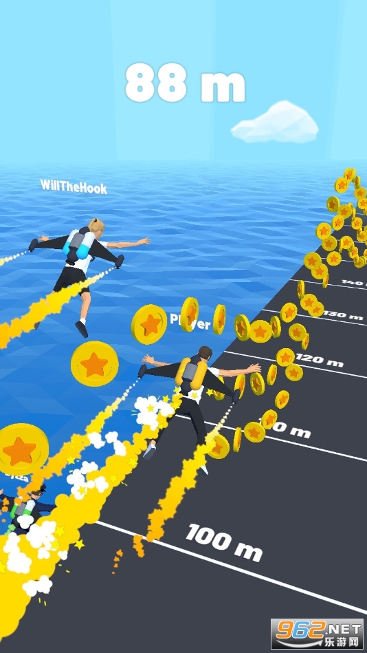 在游戏中你会收集硬币。使用硬币,你可以提升你的滑翔速度和山谷深度来提高你的最终分数!