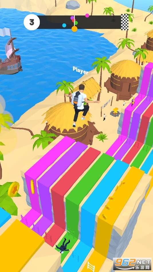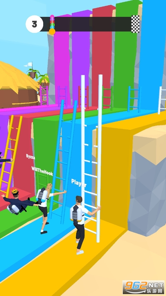 敏捷的奔跑游戏,玩家需要及时的点击屏幕来生成梯子越过一个个平台,超越众多的对手,抢先到达平台,可以升级技能提高角色的速度等属性,喜欢的朋友可以下载试试。