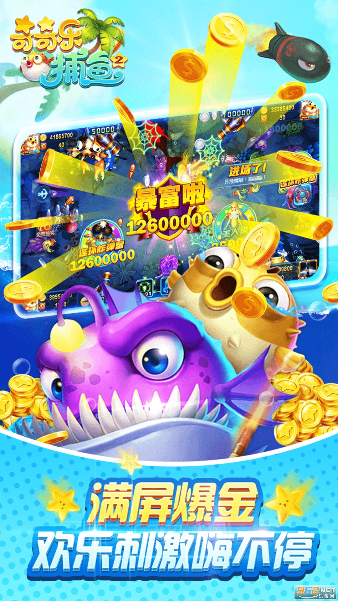《奇奇乐捕鱼》与市面上大多数的捕鱼不同,不光增加了剧情,而且每个渔场都有独特的玩法,更有奖励多多的比赛模式,话费、各类大奖等你来赢!