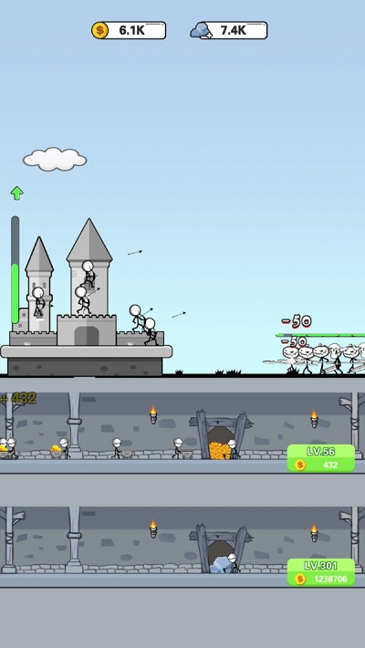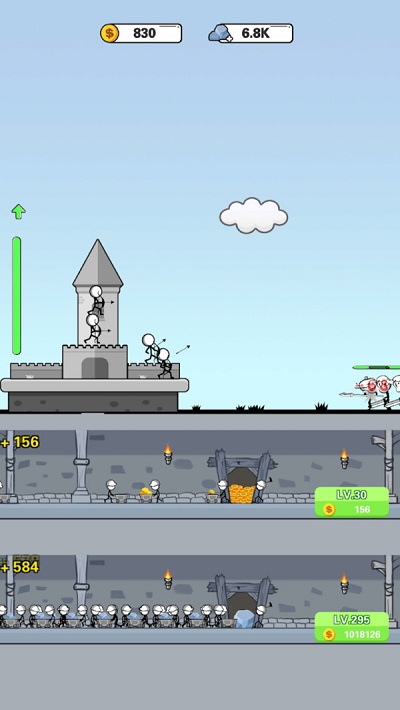 3、带领火柴人军队开采黄金和资源,学习战斗技能,去对抗敌人,获取极致爽快的战斗感。