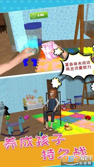 游戏中拥有各种各样的任务需要你完成,超多的关卡对应着孩子不同的阶段,不同的阶段需要你做的事情也会不一样,让你在游戏中身临其境的去体验妈妈的艰辛,快来下载吧!