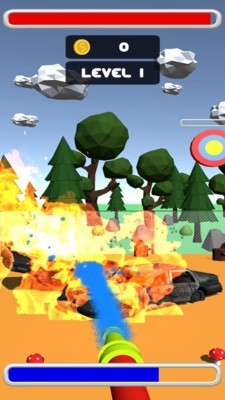 简单的游戏玩法,玩家只需要使用灭火器对有火的部分进行射击即可;