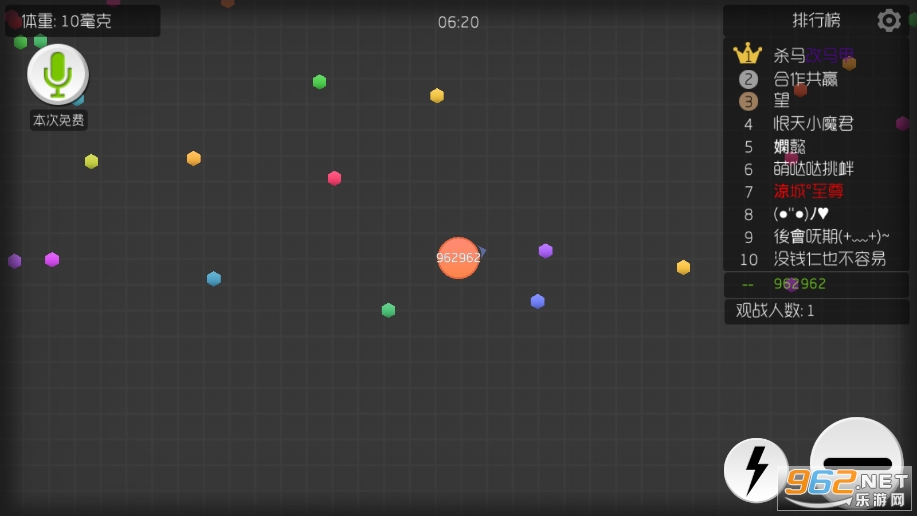 《合作吃球球正式版》是一款比较好玩的多人在线吃球球竞技游戏,玩法类似《球球大作战》,2D清新的画风场景设计,简单有趣的玩法和操作,在这里你需要灵活的移动,控制你的球球在地图中疯狂的吞噬食物和比你小的球球,枪战排行榜,还有独特的团战玩法增加了游戏的乐趣!