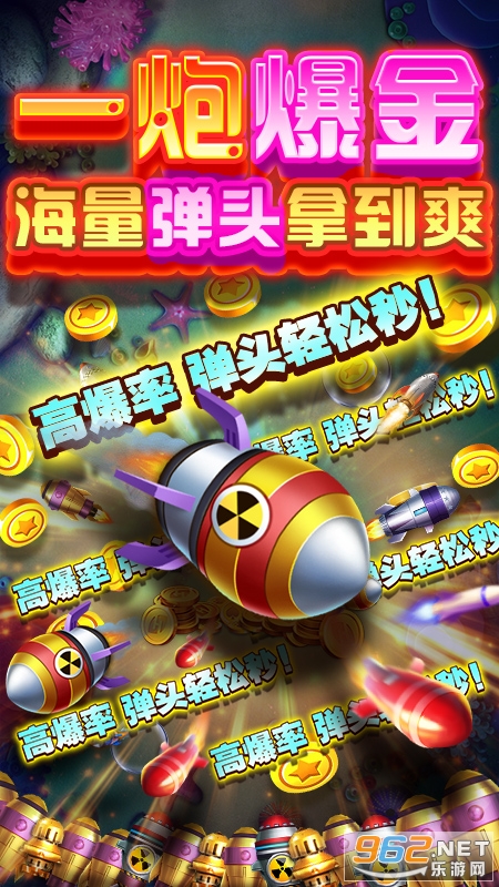 真实还原电玩城捕鱼刺激感,24小时不打烊,10倍,100倍,1000倍渔场变换无穷,BOSS花样百出,千炮捕鱼炮台助你爆满全屏金币。
