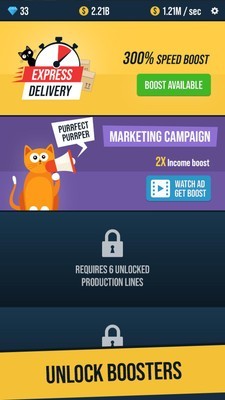 3、玩家开始在工厂进行改革,并继续进行投资各种改革以提高效率,我们的目标是赚更多的钱。