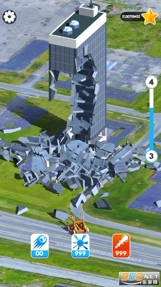 《爆破大师游戏》(Demolish)是voodoo推出的一款破坏类休闲手游,游戏中玩家将利用一个投石车来摧毁前方出现的各种建筑,有着三种不同的武器可以使用,攻击效果各不相同,玩家可以利用星星来升级这三种武器,比如升级激光、炸弹等,调整发射角度去摧毁大楼。