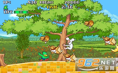 一个不出名公司的街机作品,但是街机厅里却见到过这个作品,难度还是比较大的.一开始也是一些没素质的家伙捣毁了乌鸦的鸟巢,于是乌鸦追击去讨个说法,随着游戏的深入进行,问题好象不是那么简单....