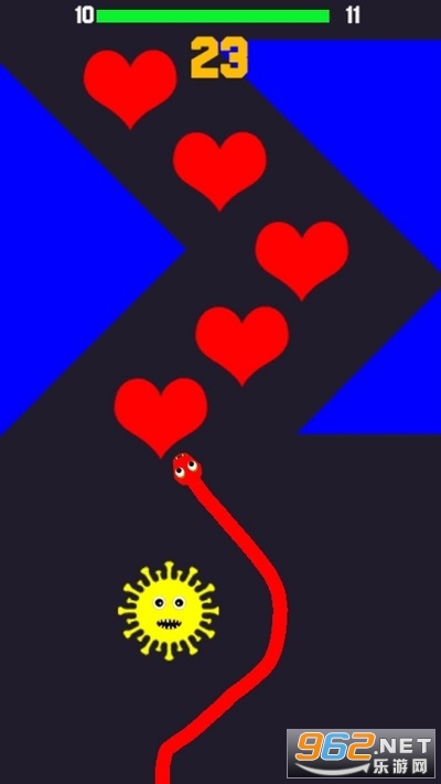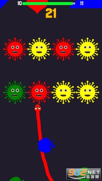 控制蛇蛇左右滑动,通过击败尽可能多的方块,获得高分。