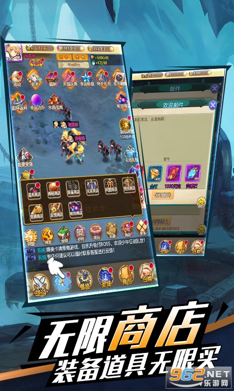 2、颠覆性神装掉落、神器打造系统,挂机得满身神装,绝世神器亲手铸造,体验战力飞升快感;