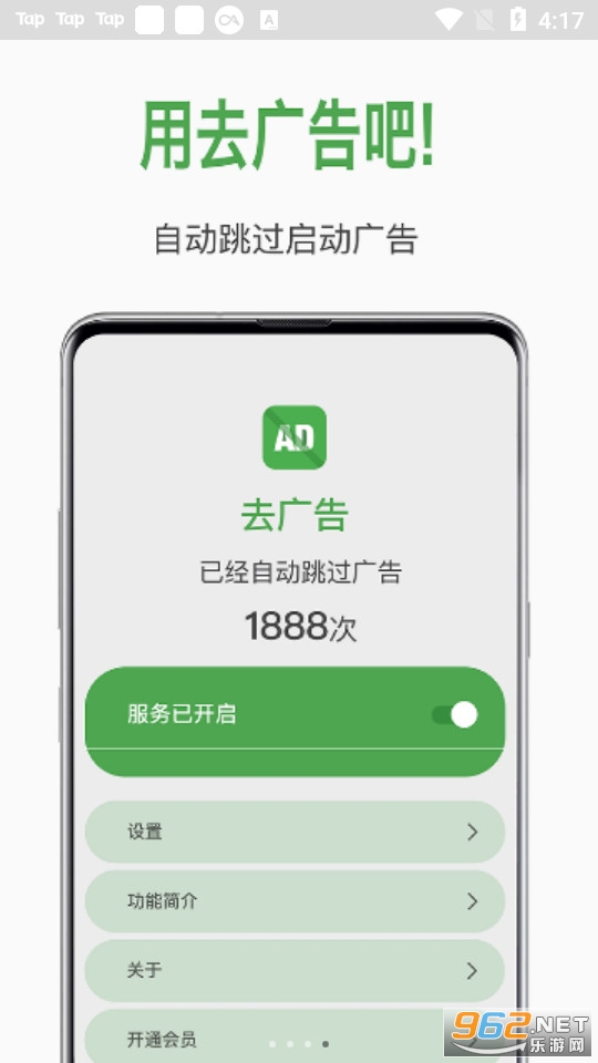 3、自动去广告app是一款非常好用的手机去广告工具,一键在线去除手机广告,自动跳过启动页的广告。